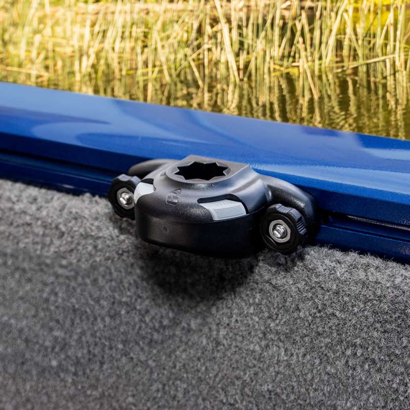 This mounting base allows tool-free installation of accessories on the gunnel tracks of most aluminium fishing boats and kayaks with tracks including: